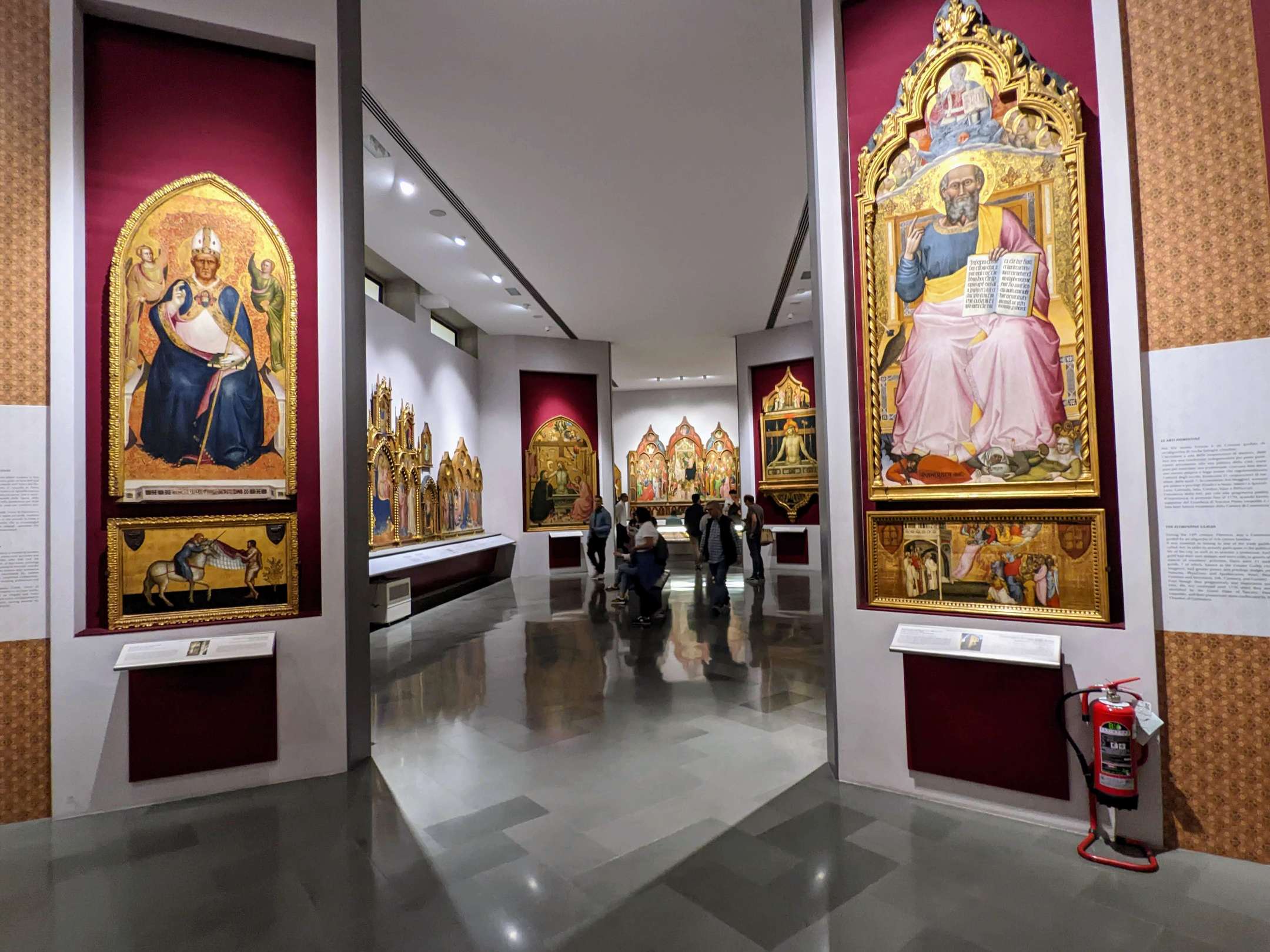 In the Florentine Gothic hall of the Accademia Gallery, a truly awe-inspiring work of art awaits visitors, created by the talented Pacino di Buonaguida. Completed between 1310 and 1315, this masterpiece showcases a crucified Christ at its center, surrounded by intricately designed roundels depicting pivotal biblical events.